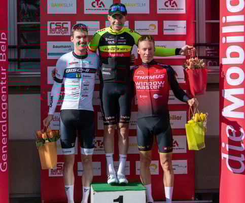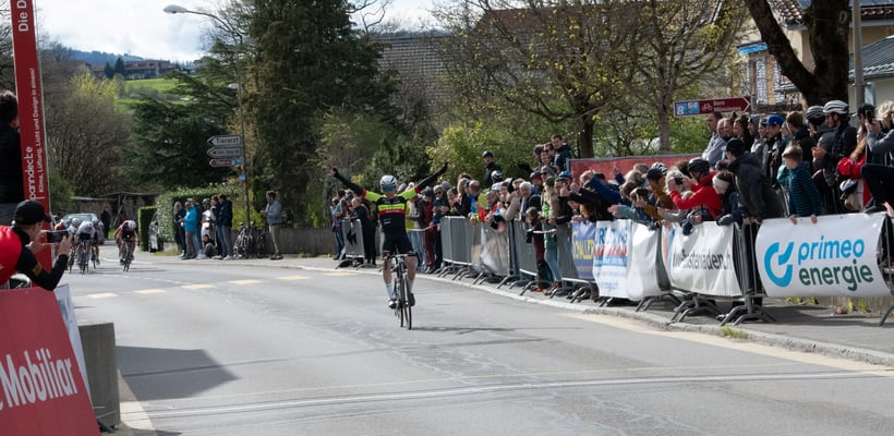 Spannung bis zum Ende beim 15. Grand Prix Mobiliar, dem Ostermontag-Radrennen in Kiesen. Auf der flachen aber sehr anspruchsvollen Strecke entwickelte sich von Beginn weg ein attraktives Rennen. Bereits nach rund einem Drittel konnte sich 3er-Spitzengruppe vom Feld lösen. Die Gruppe mit dem Berner Nils Aebersold (Lidl-Trek Future Racing), Felix Stehli (Team Vorarlberg) und dem Dänen Frederik Lykel (Team Tudor) harmonierte bestens, konnte aber nie einen grössen Vorsprung von 35 Sekunden herausfahren. Im Feld wurde prompt reagiert und so kam es 7 Runden vor Schluss zum erneuten Zusammenschluss. Zahlreiche Attacken blieben erfolglos. Erst zwei Runden vor Schluss konnte sich erneut Felix Stehli (Team Vorarlberg) vom Feld lösen und rettete schlussendlich knappe 2 Sekunden ins Ziel. Um die weiteren Podestplätze kam es zu einem Sprint einer grösseren Gruppe. Bahnfahrer Simon Vitzthum (bischibikes-tobler-racing) erwies sich als stärkster Sprinter vor Marcel Wyss (Thömus ¦ WindowMasters) als bester Berner. Nach drei Berner Siegen in Folge geht der Sieg in diesem Jahr in den Kanton Zürich. Mit seinem dritten Rang übernahm Marcel Wyss die Führung im Primeo Energie Cycling-Cup.